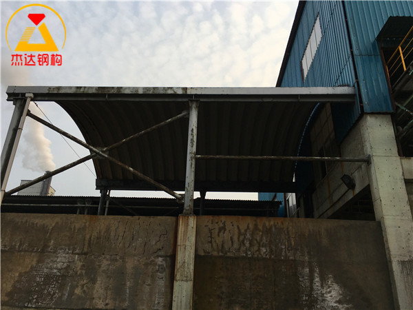 江西銅業冶煉廠拱形屋頂使用的是全鋼結構拱形屋頂,水槽是4mm厚304不銹鋼水槽,跨度小施工困難,杰達鋼構施工人員迎難而上,順利完成施工。