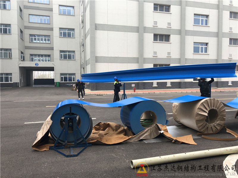 這是杰達鋼構的拱形屋頂壓型設備