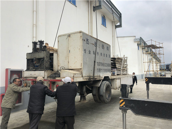 下圖為我公司員工正在吊裝拱形屋頂壓型設備,準備奔赴新的公司。