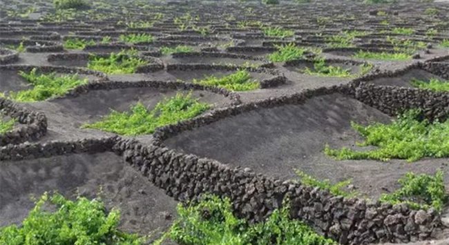 加那利群島黑色的土壤總讓人想起侏羅紀公園。這些島嶼位于大西洋上,地理位置靠近非洲,這里的葡萄園生機勃勃。島上的釀酒品種封堵多樣,除了葡萄樹外,加納利群島還種植了許多熱帶花卉、香蕉和蔬菜。蘭薩羅特島是人口最多的島嶼,1730年到1736年,這里發生了大規模的火山噴發活動,這里的土地被覆蓋上了近5米厚的熔巖層。每年冬天,猛烈的撒哈拉沙暴卡利瑪(Calima)都會席卷加那利群島。為了保護葡萄藤,庫拉拉法葡萄訓練法是必不可少的——人們用巨大的石墻圍繞著埋在地下的葡萄藤。