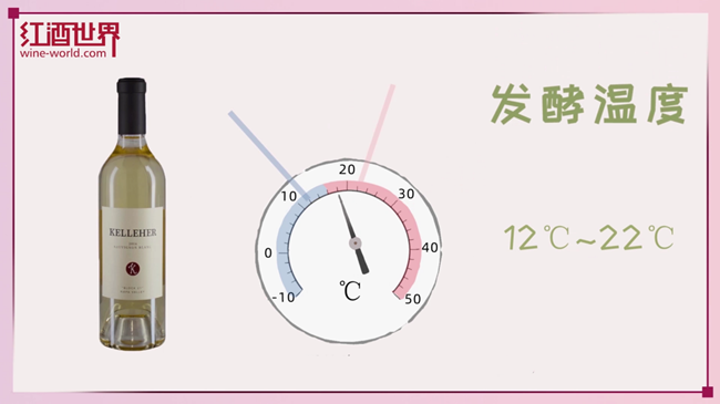 白葡萄酒的理想發酵溫度為12°C至22°C之間,因為較低的溫度可以減緩葡萄酒的發酵進程,有利于保留葡萄品種的風味特性,盡可能避免芳香物質的流失。在較高的溫度下發酵可以使葡萄酒產生一些更復雜的芳香,但有可能會失去果味;在過低的溫度下發酵會給葡萄酒帶來水果硬糖的味道,也不利于展現葡萄品種的果味。