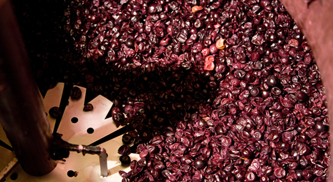 葡萄采收后會進行去梗和破皮,但這不是必須工序,因為有些酒莊會特意保留果梗,保持果實顆粒完整,以便進行整串發酵。破皮的過程需盡可能輕柔,避免破壞葡萄籽,釋放出苦油和單寧。