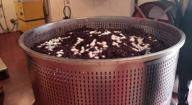 淋皮:利用泵將發酵中的葡萄汁從發酵罐底部抽至頂部往下淋,將酒帽淋透。