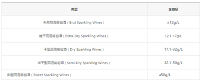 起泡酒據含糖量分類標準圖