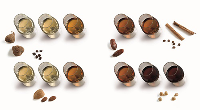 在陳釀階段,氧氣的作用和參與程度則因酒而異。對(duì)于使用惰性容器(如不銹鋼發(fā)酵罐)陳釀、希望保留品種本身特點(diǎn)的葡萄酒而言,氧氣會(huì)造成不利影響,需能少則少。對(duì)于使用橡木桶陳釀的葡萄酒來(lái)說(shuō),少量的氧氣大有裨益,它們可以通過(guò)木桶上的細(xì)小孔隙進(jìn)入桶內(nèi)并與酒液發(fā)生輕微的氧化反應(yīng),從而柔化葡萄酒的單寧,使酒液的口感更為細(xì)膩柔順,同時(shí)使其發(fā)展出更加復(fù)雜多樣的風(fēng)味。對(duì)于西班牙雪莉酒(Sherry)和汝拉(Jura)黃酒(Vin Jaune)這樣的氧化型葡萄酒來(lái)說(shuō),氧氣的重要性不言而喻,釀酒師通常刻意采用未裝滿的釀酒容器來(lái)陳釀這些葡萄酒,以便讓更多氧氣進(jìn)入桶內(nèi),使酒液發(fā)展出焦糖、堅(jiān)果、咖啡、太妃糖等獨(dú)特的氧化風(fēng)味。