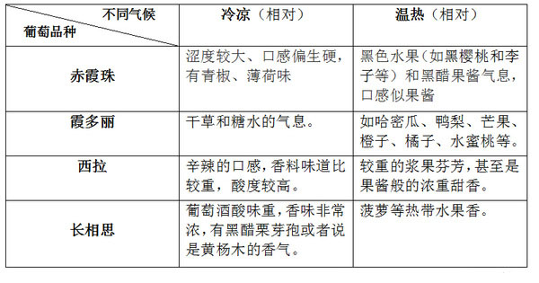 每個(gè)品種的葡萄的果粒大小、果皮厚度、色澤、色素量和密度,所含單寧的量及質(zhì)量,風(fēng)味成分的構(gòu)成,熟成難易度,土壤和氣候的適應(yīng)性等,這些因素的不同,將造成所釀葡萄酒的香味、酸味和澀味以及口感、酸度和色澤等發(fā)生變化。