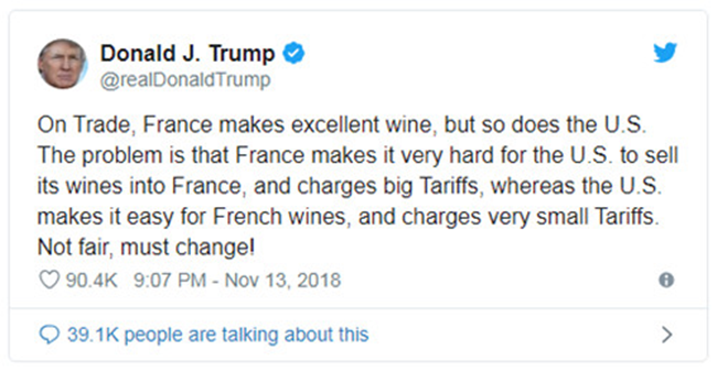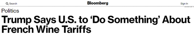 其實,川普盯上法國葡萄酒也不是頭一回了,之前就在推特上發文炮轟,痛斥法國在葡萄酒貿易上“霸道”,說的也是關稅的事。