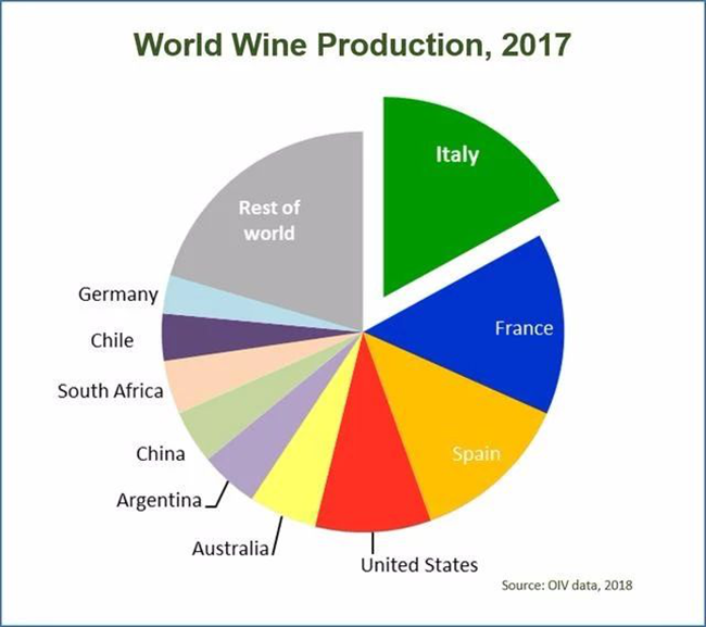 △2017年全球葡萄酒產國產量圖:意大利第一,法國第二