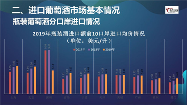 在仔細分析口岸數據后就會發現,深圳由2018年的5.24億美元,迅速下滑到2019年的2.55億美元。我認為這與2018年,深圳口岸由于種種原因進口了大量的高端酒、奢侈酒有關。進一步去想,2019年整個大盤下跌15%,受高端酒、奢侈酒的影響較大,整個市場其實并沒有受到過多沖擊。