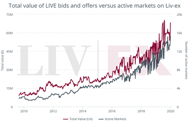自動化最明顯的影響是使Liv-ex市場的葡萄酒大增。 如我們在最近的有關博客中指出,在2019年7月,出價和報價總值創7000萬英鎊新高。