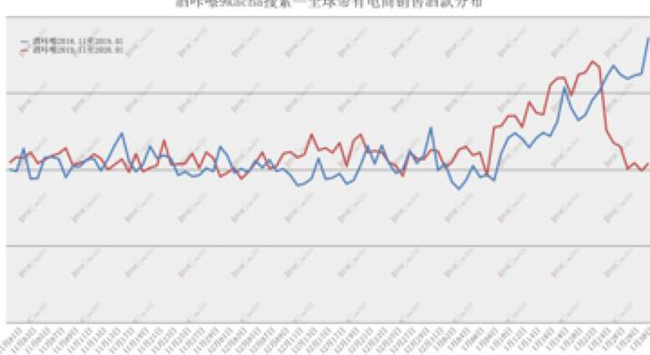 在Nov 2019 to Jan 2020——Nov 2018 to Jan 2019階段,Baidu搜索量平穩(wěn)增長,作為傳統(tǒng)節(jié)日的春節(jié)后因假期及外部環(huán)境原因開始下滑。而同一時期內(nèi),9kacha搜索量增長明顯,9kacha用戶群體中,約1/3為葡萄酒行業(yè)用戶,受春節(jié)、提前進入假期及外部環(huán)境原因,搜索量開始下滑,整個葡萄酒行業(yè)受假期及外部環(huán)境原因影響更加明顯。
