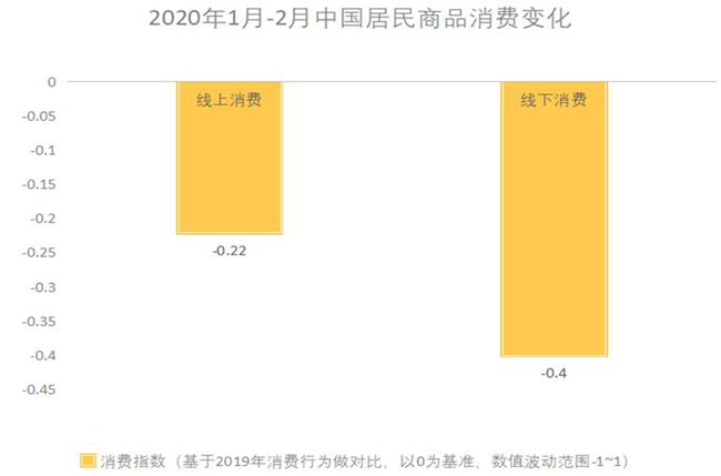 疫情期間,實際消費指數(shù)均呈下滑態(tài)勢,但線上消費依舊可觀。對比2019年,2020年我國消費者整體線上消費指數(shù)為-0.22,線下消費指數(shù)為-0.40(數(shù)據(jù)來源:艾瑞咨詢)。