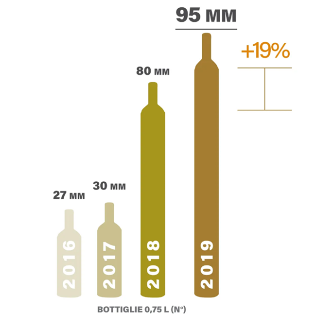 2019年,SICILIA DOC產量超過9500萬瓶(750ml),與2018年相比增長了19%。