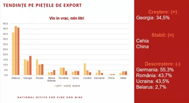 在過(guò)去14年中,全球盛產(chǎn)葡萄酒,且十年來(lái)葡萄酒消耗量陷入停滯,導(dǎo)致葡萄酒供大于求。摩爾多瓦共和國(guó)更是連續(xù)兩次取得創(chuàng)紀(jì)錄的豐收,并設(shè)法保持主要出口指標(biāo)相對(duì)穩(wěn)定,出口量小跌但影響甚微。