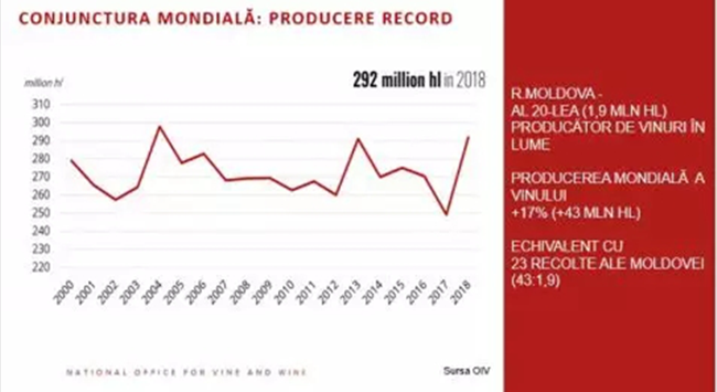 摩爾多瓦國(guó)家葡萄與葡萄酒局表示,在過(guò)去10年里,2018年全球2920萬(wàn)千升,相反,包括摩爾多瓦在內(nèi)的世界葡萄酒消費(fèi)量小跌至2440萬(wàn)千升。