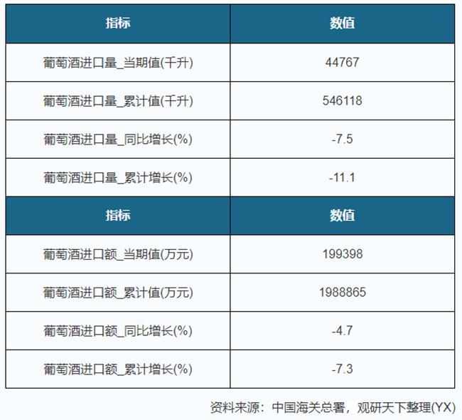 • 2019年1-10月我國葡萄酒進口量累計下降11.1%