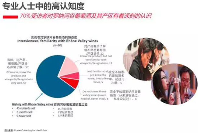 一個產(chǎn)區(qū)在一個市場發(fā)展的好,除了來自該產(chǎn)區(qū)的葡萄酒本身的品質(zhì)、性價比這些自身條件外,市場對來自該產(chǎn)區(qū)的產(chǎn)品的認(rèn)知同樣非常重要。特別是行業(yè)內(nèi)的專業(yè)人士,自身對產(chǎn)區(qū)了解足夠深入,在向消費者推薦的時候才更游刃有余,才能將產(chǎn)區(qū)的優(yōu)勢更好的傳達(dá)給消費者,從而帶動整個產(chǎn)區(qū)在中國市場的發(fā)展。這一點在羅納河谷葡萄酒也有一個非常好的體現(xiàn),據(jù)羅納河谷葡萄酒產(chǎn)區(qū)協(xié)會的一項調(diào)研數(shù)據(jù)顯示,超過70%的專業(yè)受訪者對羅納河谷有著深刻的認(rèn)識,這無疑就對羅納河谷葡萄酒在中國的發(fā)展帶來了極大的推動作用。而從消費者端的調(diào)研數(shù)據(jù)來看,羅納河谷葡萄酒已經(jīng)擁有了超過30%的認(rèn)知度。