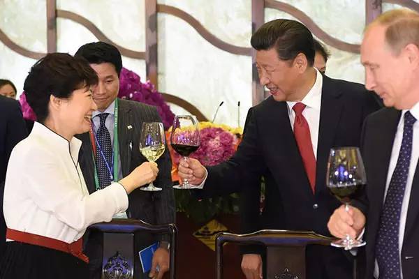 9月3日在抗戰(zhàn)勝利70周年紀念日大會閱兵式結(jié)束后,習大大和彭麻麻在釣魚臺國賓館芳菲苑宴請國際貴賓。