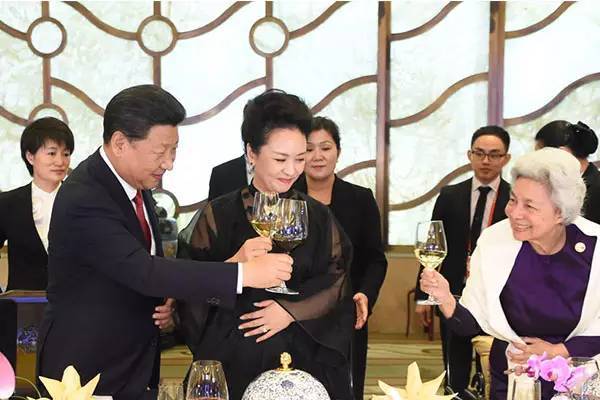 宴會上一團和氣,習大大與彭麻麻與各國的領(lǐng)導親切的交談,整個宴會廳都呈現(xiàn)出一派其樂融融的氣氛。