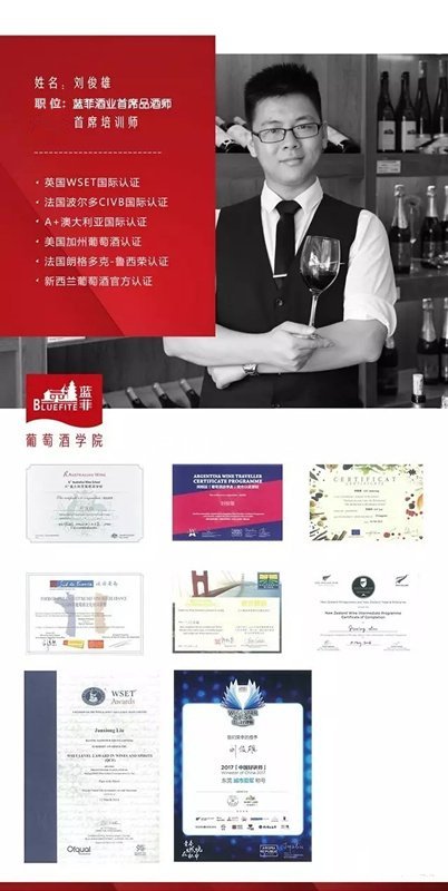 隆重的揭牌儀式結(jié)束后,藍(lán)菲學(xué)院迎來了首堂葡萄酒培訓(xùn)體驗(yàn)課,課程主講是藍(lán)菲酒業(yè)首席品酒師劉俊雄先生。劉俊雄是藍(lán)菲酒業(yè)高薪聘請(qǐng)的一位才情卓越的品酒師,專注公司葡萄酒文化體系的建設(shè)與文化傳播。他授課特點(diǎn)風(fēng)趣幽默,善于與學(xué)員互動(dòng),能夠在課堂上以潤(rùn)物細(xì)無聲的方式將葡萄酒文化、知識(shí)植入學(xué)員腦海。體驗(yàn)課上,劉俊雄對(duì)葡萄酒的認(rèn)知以及授課方式獲得嘉賓們的高度贊譽(yù)。
