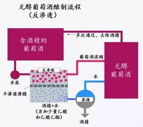 但同時又保留了酒的香氣,通過不停轉動的不銹鋼滾筒分離酒精,收回的酒液每經過一輪反滲透,酒精的濃度就降低一點,約經過3-5次滲透就可以得到無醇葡萄酒。
