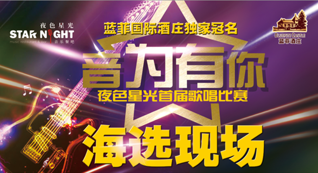 由東莞市藍菲酒業(yè)有限公司獨家冠名的,夜色星光音樂餐吧主辦的《音為有你》夜色星光首屆歌唱大賽全面啟動,初賽于8月9日-11日在廣州大道北佳潤廣場盛大舉行!來自五湖四海的100多個音樂人“音”為愛好而相聚在一起,拿起麥克風(fēng),唱歌給你聽!在夜色星光中用音樂發(fā)聲!這夜,舞臺為他們而設(shè),我們,為他們而來。