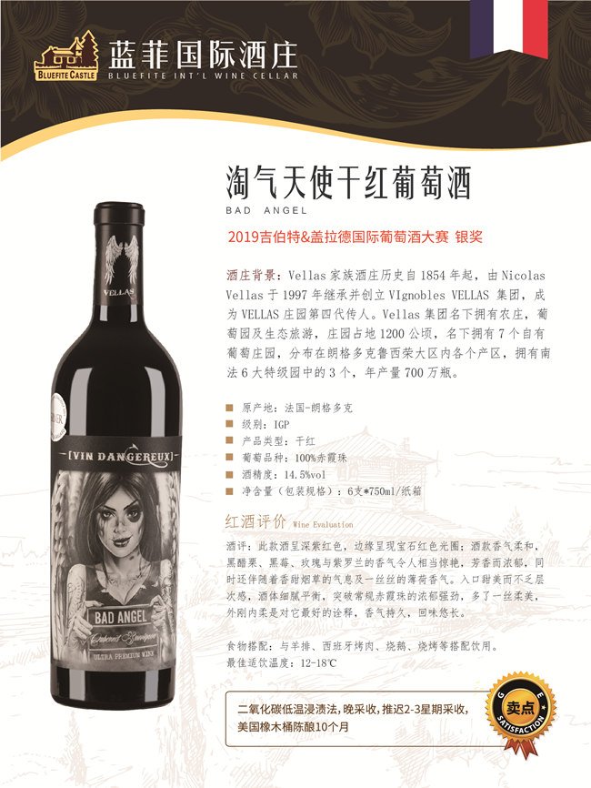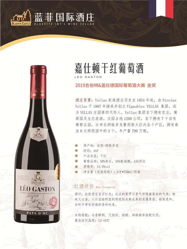 《吉伯特&蓋拉德葡萄酒指南(Gilbert&Gaillard)》一直是法國最權(quán)威的葡萄酒指南之一,該雜志由菲利浦·蓋拉德(Phillippe Gaillard)和弗朗索瓦·吉伯特(Fransois Gilbert)兩人創(chuàng)辦于1991年,如今已發(fā)展成為全球性的葡萄酒多媒體產(chǎn)業(yè),旗下記者遍布法國、意大利、西班牙、中國和美國?!都?amp;蓋拉德葡萄酒指南》所有品評過的葡萄酒都是在盲品的條件下進行,采用的是國際流行的100分制體系;品酒記錄及得分會公布在雜志的官網(wǎng)Gilbertgaillard.com上。由此可見Vellas酒莊出品的嘉仕頓干紅葡萄酒、快樂天使干紅葡萄酒以及淘氣天使干紅葡萄酒的風(fēng)味與實力!
